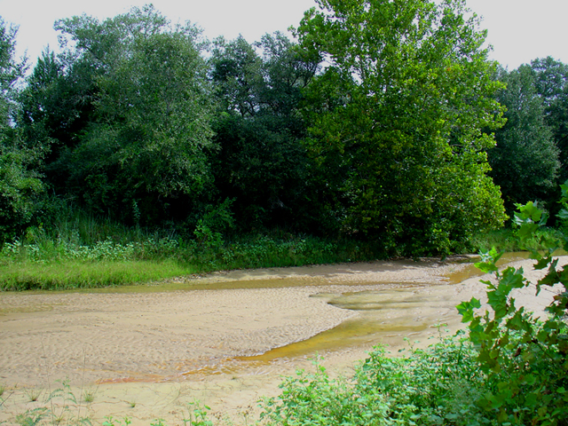 The Pin Oak Branch residence (top left) has a total of three bedrooms, three baths, separate one car garage/apartment located on 71 acres. Pin Oak Branch Creek flows through the property. This creek, with St Augustine grass banks and white sand bottom, flows clear water year round. Please click on this thumbnail.